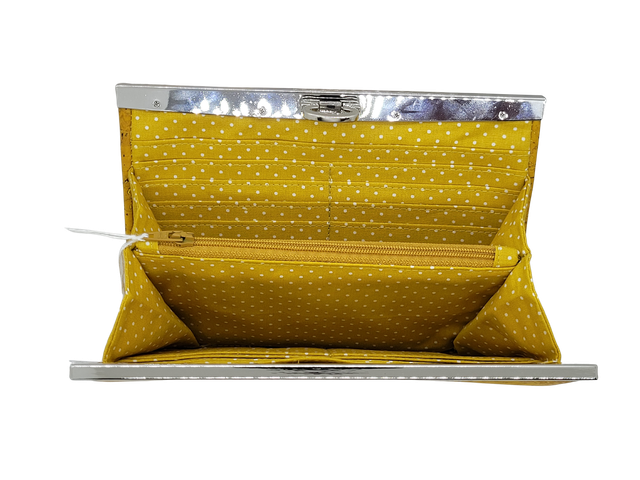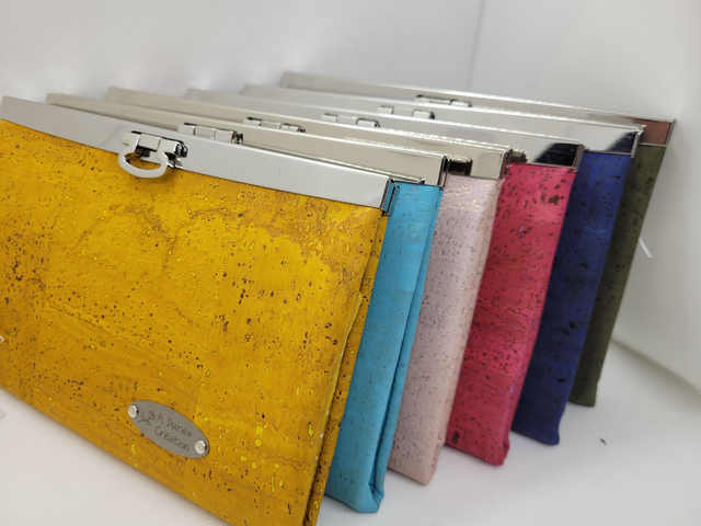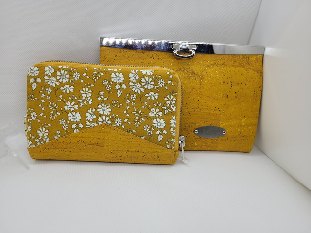 Grand portefeuille en liège avec un fermoir en métal, très chic et un brin vintage.