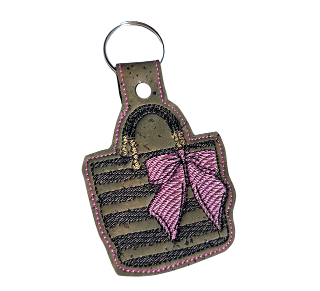 Liège Kaki, broderie sac noir, doré avec le noeux rose