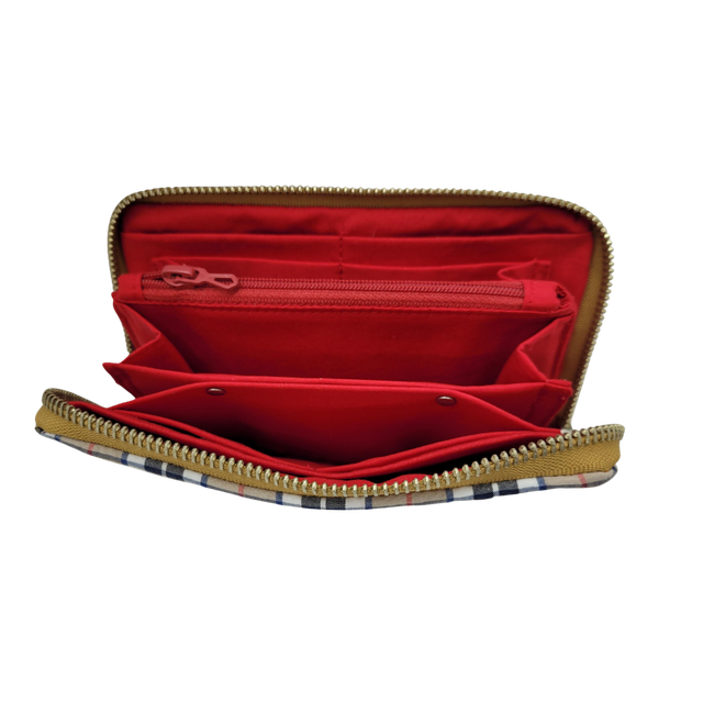 Portefeuille zippé moyen tartan et cuir d'agneau rouge