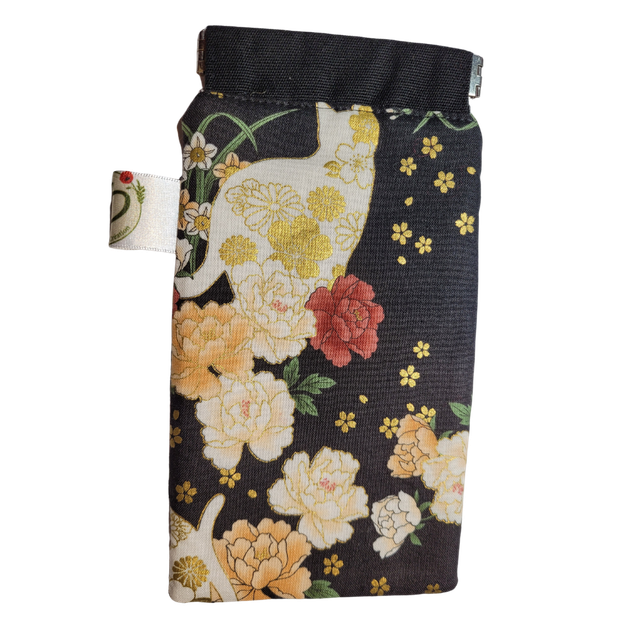 Etui à lunettes molletonnés en véritable tissus tissus japonais chat doré avec fermoir clic-clac